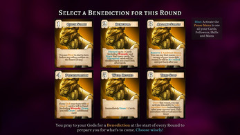 The game combines elements of RPG and light deck-building where Cards / Mana / Recruitable Followers and always-on Blessings must be synergized to Move, Interact and Battle with unlimited undo mechanics during battles to find the best possible outcome.